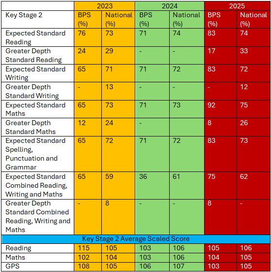 Click on a link below to view our Key Stage 2 SATs results: